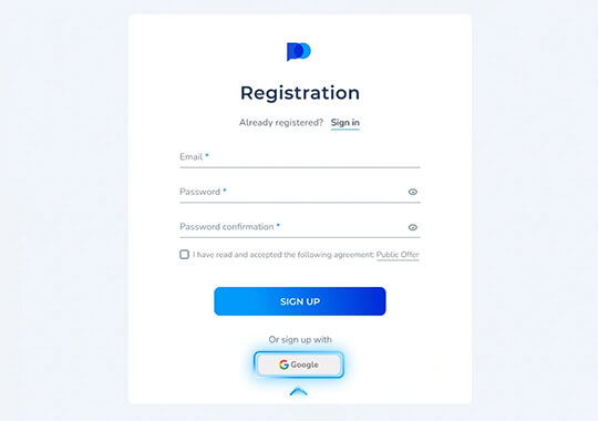 Selecione a opção mais confortável e prossiga com o registro da sua conta. Observe que, se você se inscrever via Facebook ou Google, pode ser necessário redefinir a sua senha here aqui para entrar na sua conta PO TRADE usando e-mail e senha.
