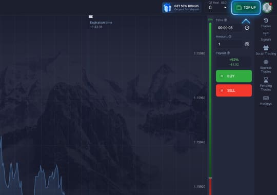Савдо дар опсияи ҷайб ҳамчун 123 осон аст. Дороии савдоро интихоб кунед, тарҳбандии диаграммаи афзалиятнокро таъсис диҳед ва нишондиҳандаҳоро барои таҳлили беҳтари бозор фаъол созед. Маблағи савдоро муқаррар кунед, вақти харидро таъин кунед ва ё коҳиши нарх ё фармоиши афзоишро ҷойгир кунед.